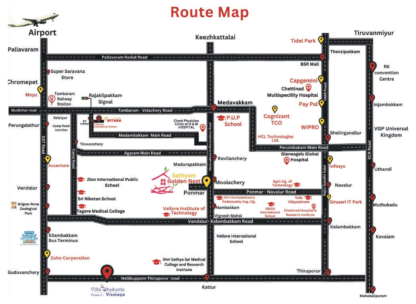 - ELCOT / OMR (Sholinganallur / Elcot IT corridor) – 20 Mins (11 km).